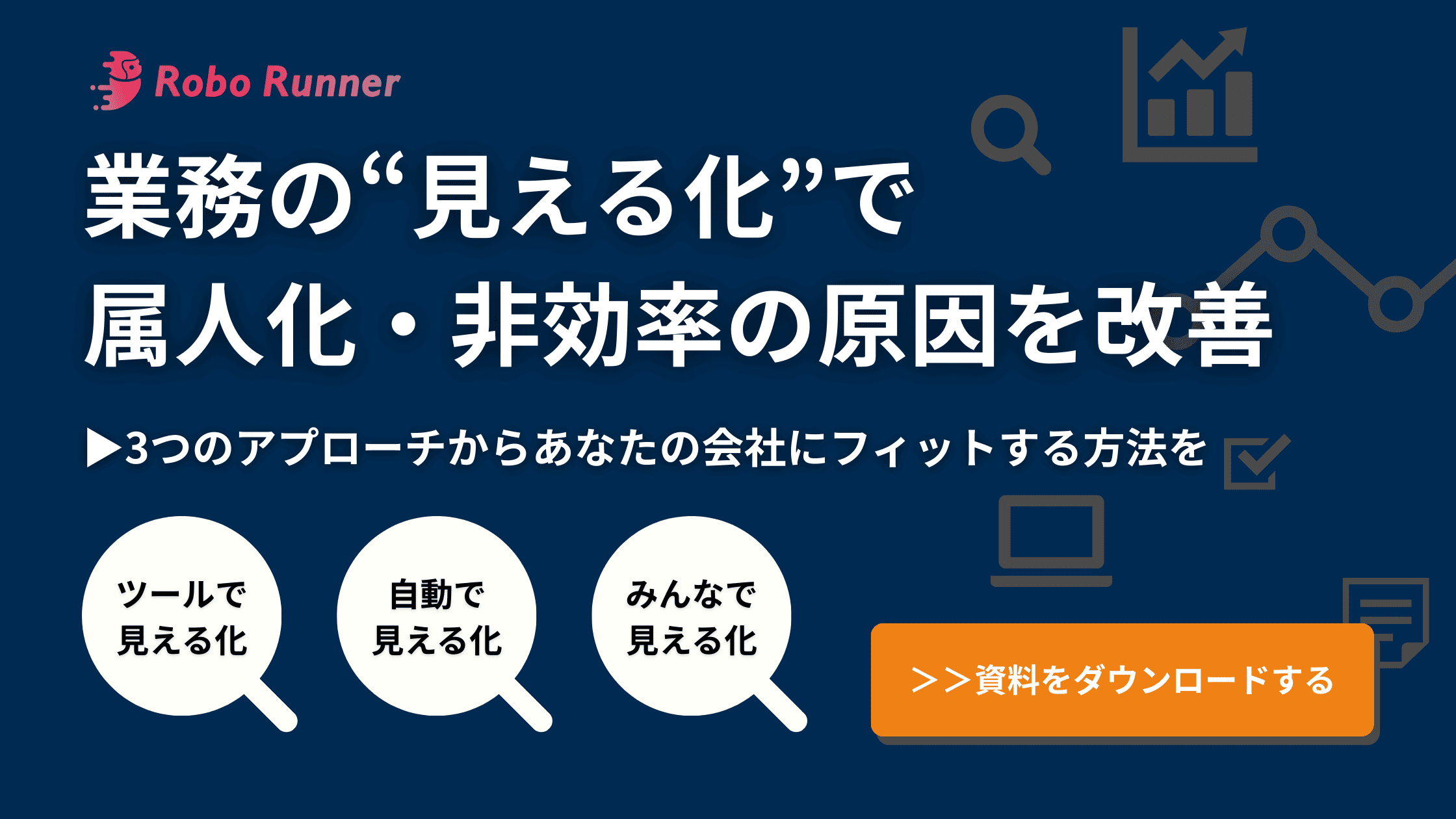 Peaceful Morningの「Robo Runner」では、プロの視点から業務を可視化するコンサルティングサービスを提供しています。現場への丁寧なヒアリングや業務データの分析を通じて、属人化や非効率の要因を明らかにし、次のアクションへとつなげます。