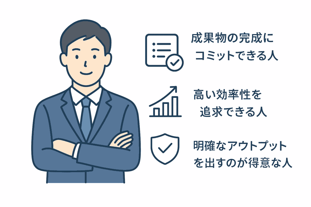 一方、請負契約は、成果物の完成に対して一定の責任を負い、その上で報酬を得る特徴から、成果物の完成にコミットできる人、高い効率性を追求できる人、明確なアウトプットを出すことを得意とする人などが向いています。こうした特徴を踏まえ、契約の際は自身の性格や強みを洗い出し、どの契約方法が合っているかを考えることをおすすめします。